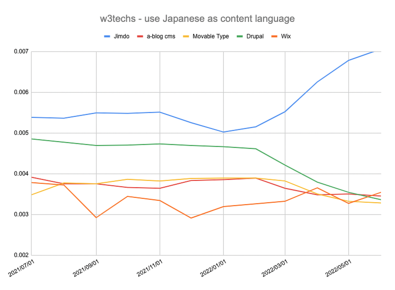 あまり大きな変化は無いですが、Distribution of content management systems among websites that use Japanese が他のサイトで扱われるようになるまで定期的に情報を掲載していきたいと思います。