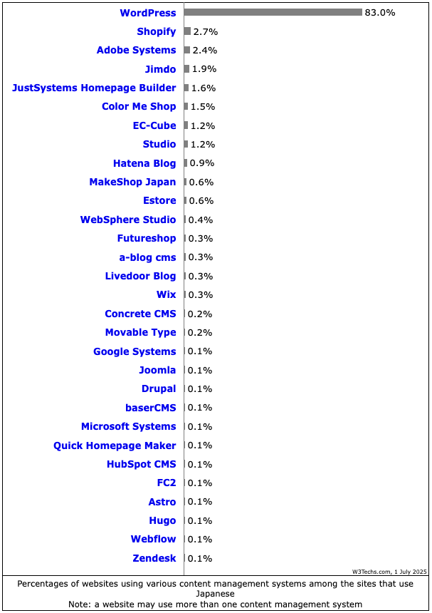 2025年7月1日時点の、日本国内での CMS シェア がオープンになっている情報をまとめておきます。