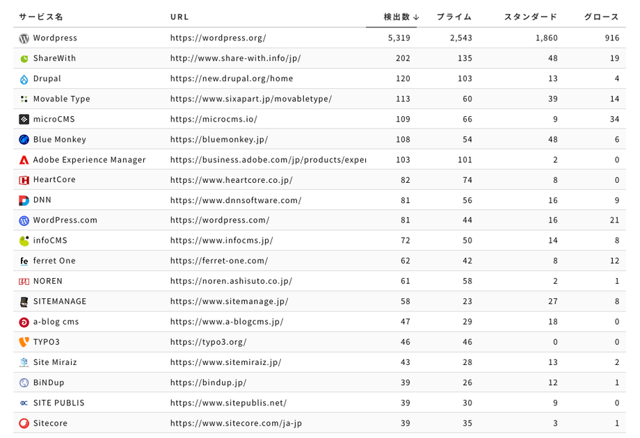 毎年夏にアップデートされるこちらのデータが更新されました。大手のウェブサイトでどのようなものが使われているかのデータになります。 https://oshiete-url.jp/report/cms/2025_8/