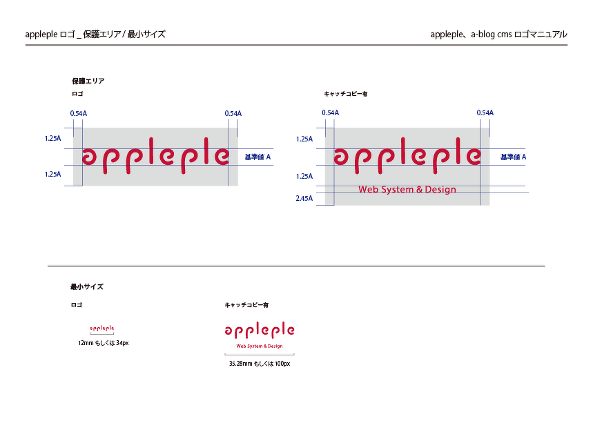 ちなみに、下記はapplepleのロゴの保護エリアと最小サイズです。