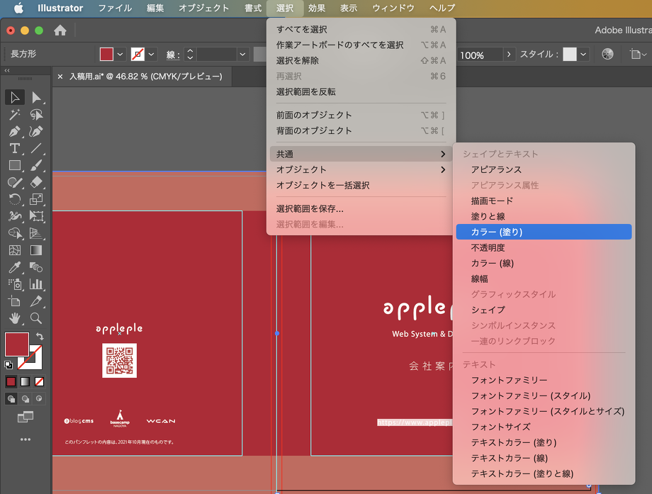 当社では、既存データはIllustratorで作られていたので、修正作業もIllustratorで行っていきます。
