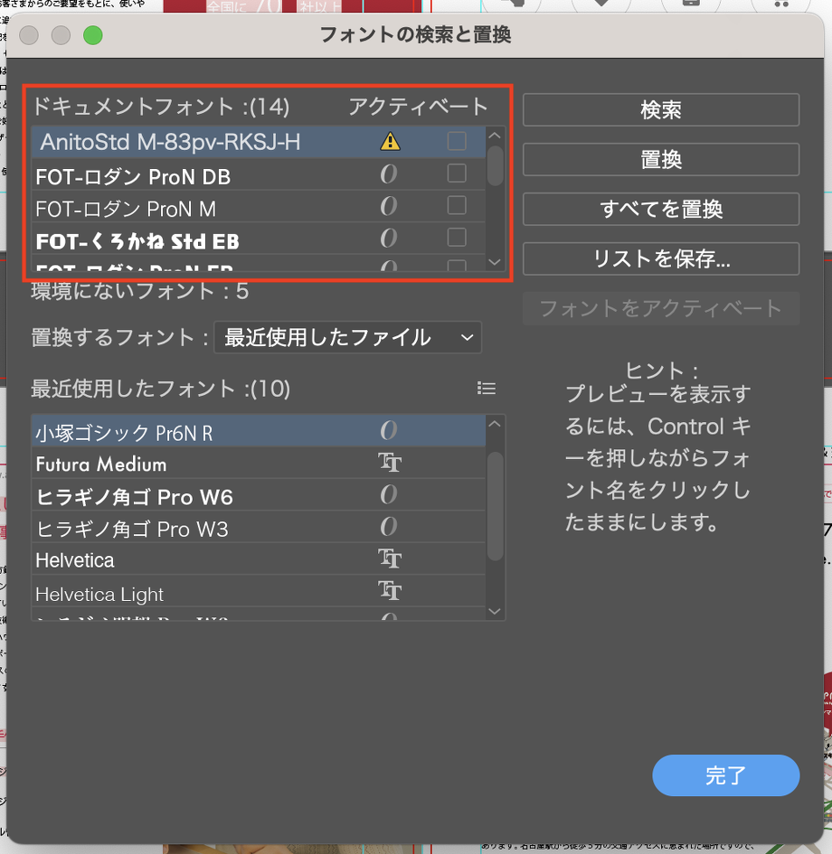 「書式>フォントの検索と置換」を使うと、使われているフォントが瞬時に分かるため、便利ですよ。