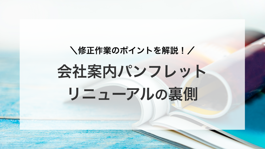 そこで今回の記事では、実際に行った会社案内パンフレットのリニューアルの流れとともに、修正作業で押さえておくべきポイントをデザイナー視点で解説していきます! 「印刷物としての配布」「Web上での公開」、この両方を想定した資料作成ノウハウを紹介していますので、ぜひ本記事がお役に立てれば幸いです。