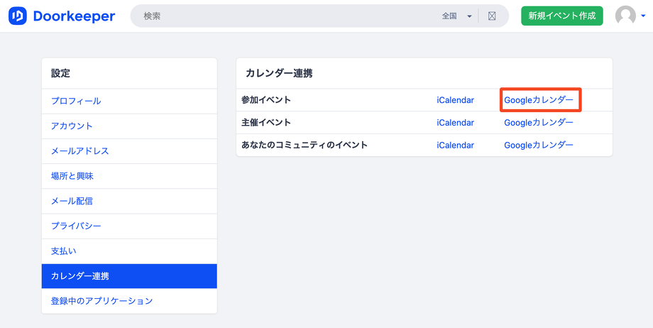 Doorkeeper にログインして、右上のアイコンをクリックするとメニューが表示されますので、設定 を選択してください。