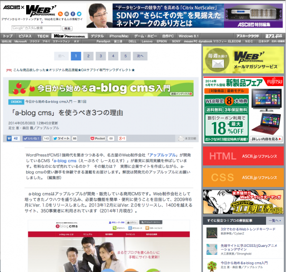 Web Professionalで自社開発CMS「a-blog cms」の連載が開始しました
