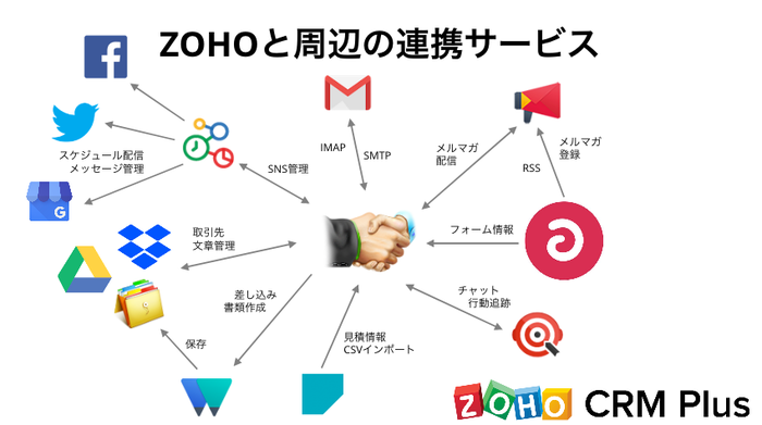 現在のアップルップルでの Zoho の各種アプリケーションや、それと連携しているサービスは上記のようになっており、まだまだな部分はありますが徐々に Zoho CRM を中心とした環境の整備を行なっております。