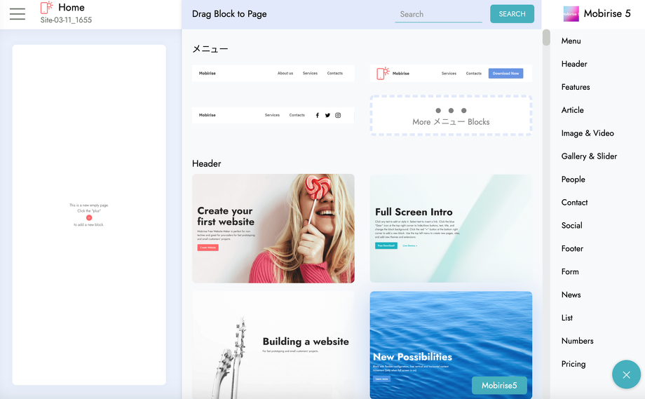 早速MobiriseでWEBサイトを作っていきましょう!