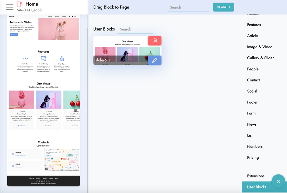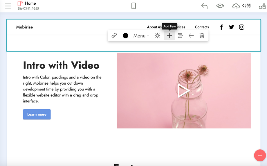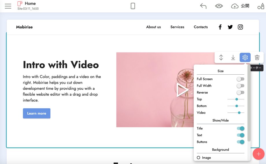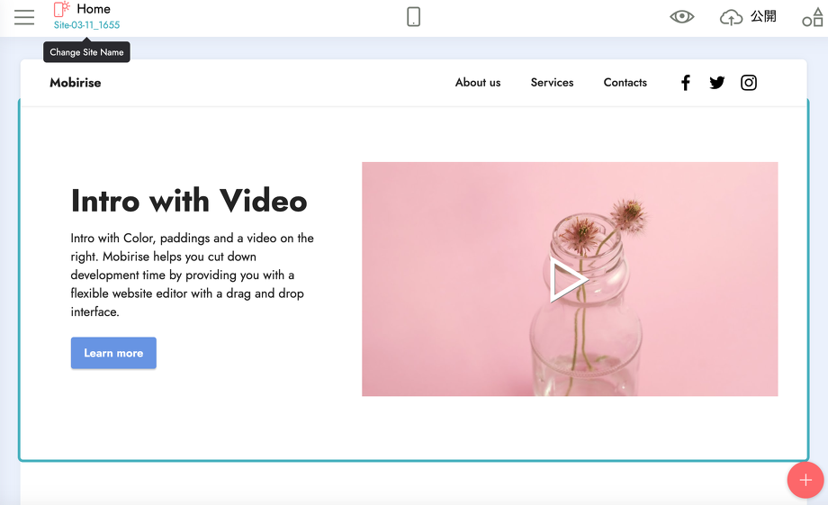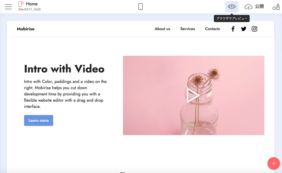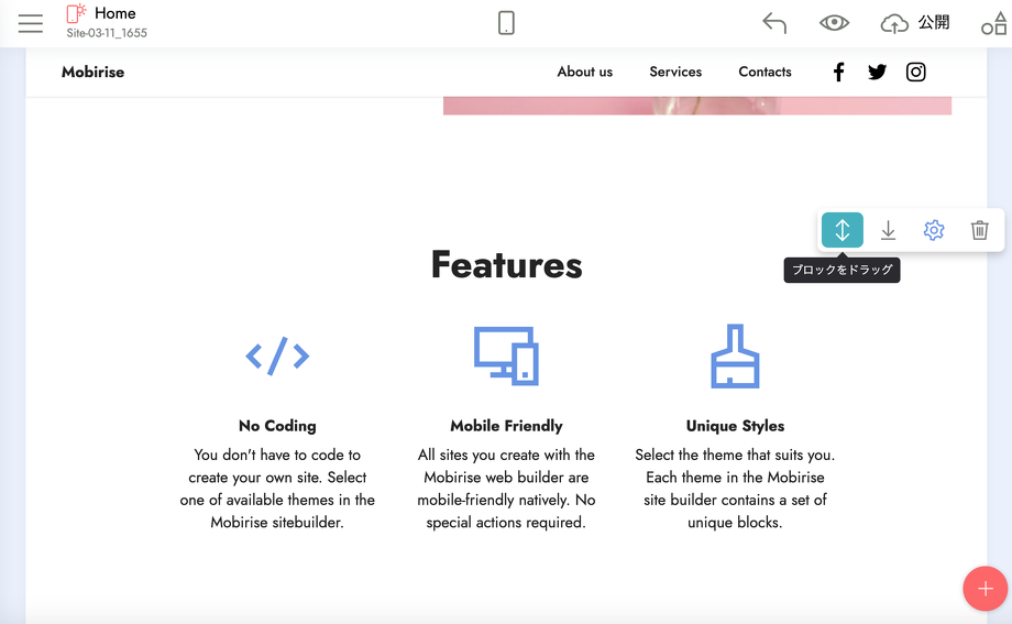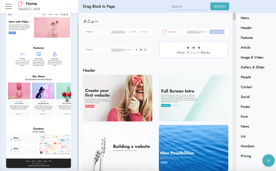 Mobiriseではコーディングの知識が無い方でもパーツを組み合わせるだけなので、サイトがほんの一瞬で作れてしまいます!