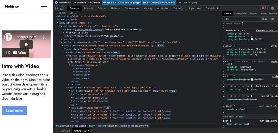 ですがMobiriseでは規則的にコードが書かれているので、修正や変更をする際もとてもやりやすいと思いますよ!