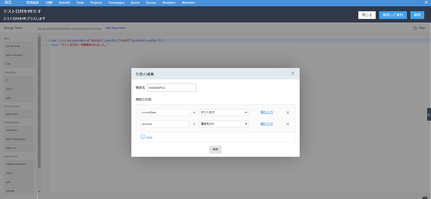 Zoho CRM で、日付項目の値を一年更新するカスタム関数を作成しました。