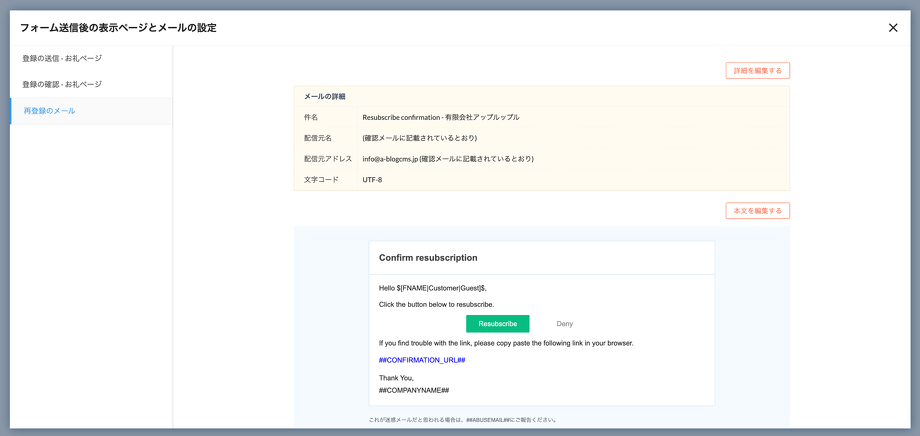 ダブルオプトインのメールの編集方法