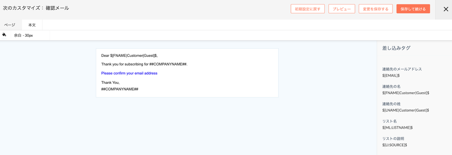 今回、メルマガ登録フォームにユーザーが登録した時に表示されるフォローアップページや、ダブルオプトインの自動メールを日本語にする方法をご紹介いたします。
