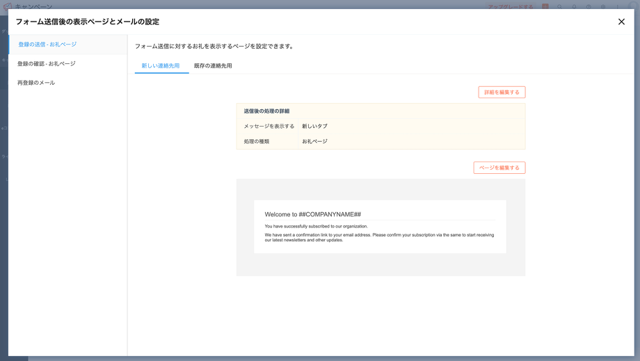 送信時:登録の送信-お礼ページ(新しい連絡先)