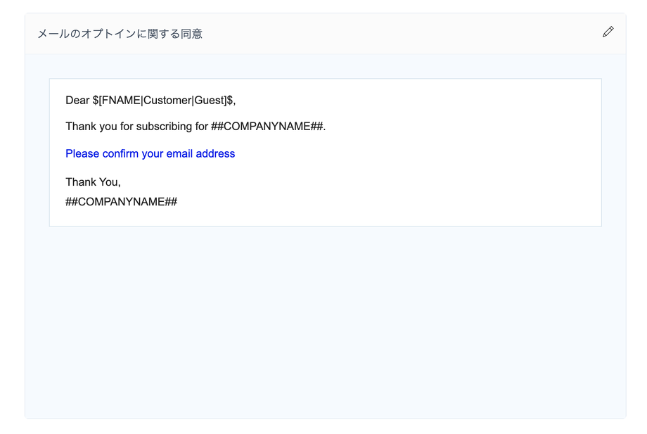 「メールのオプトインに関する同意」の右側の鉛筆アイコンをクリックすると、編集画面に移動します。