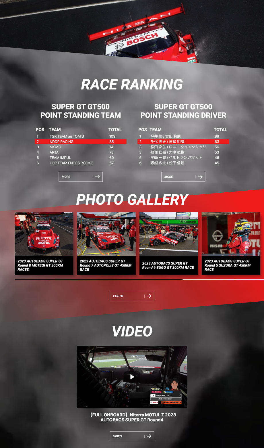 モータースポーツのイメージ的にもデザインはかっこよさを大切にしたいと思っていました。ファーストビューでレースシーンの写真が大きく掲載されている点がとても印象的で、モータースポーツの雰囲気がよく伝わるデザインにしていただけました。かっこいい写真を活用してデザインのイメージが良くなったことが一番嬉しいポイントです。