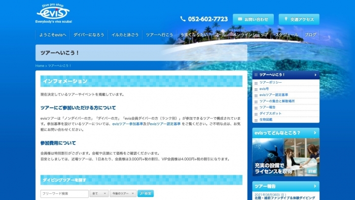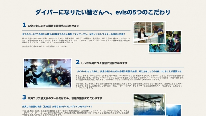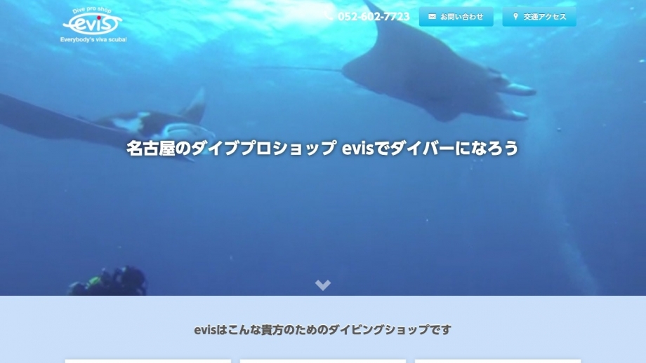 愛知県名古屋市のダイビングスクール&ショップ evis様のサイトをリニューアルさせていただきました。