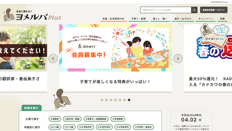 KADOKAWA様が運営する「ヨメルバ」は、子ども・保護者や、子どもと接するお仕事をされている方々にさまざまな情報を発信しているウェブメディアです。